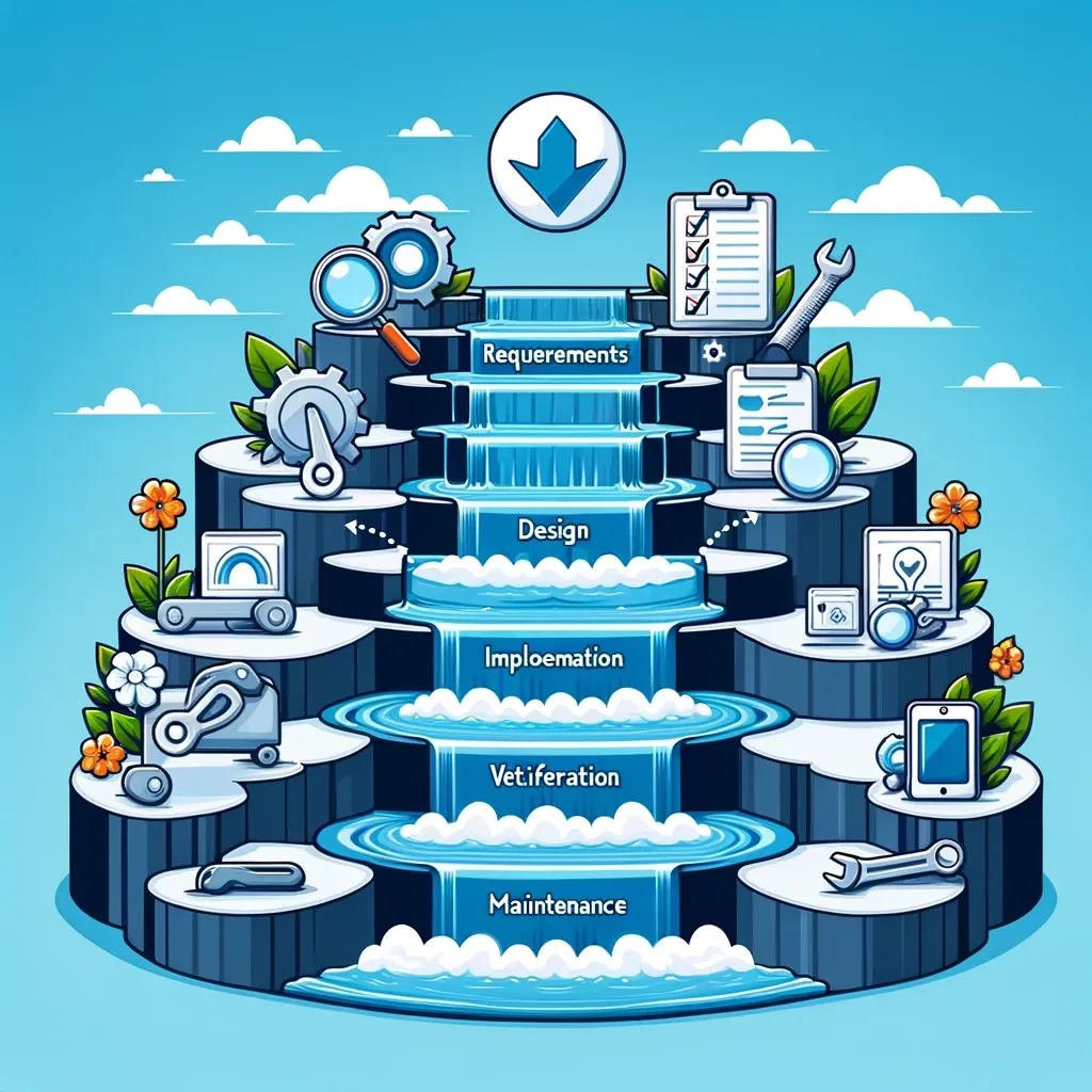 Aborder le modèle en cascade en 2024 peut sembler anachronique. Pourtant, certaines entreprises s'y réfèrent encore comme guide principal de développement logiciel. Ce modèle exécute séquentiellement toutes les tâches fondamentales d'un projet de développement logiciel, qui se décompose en :